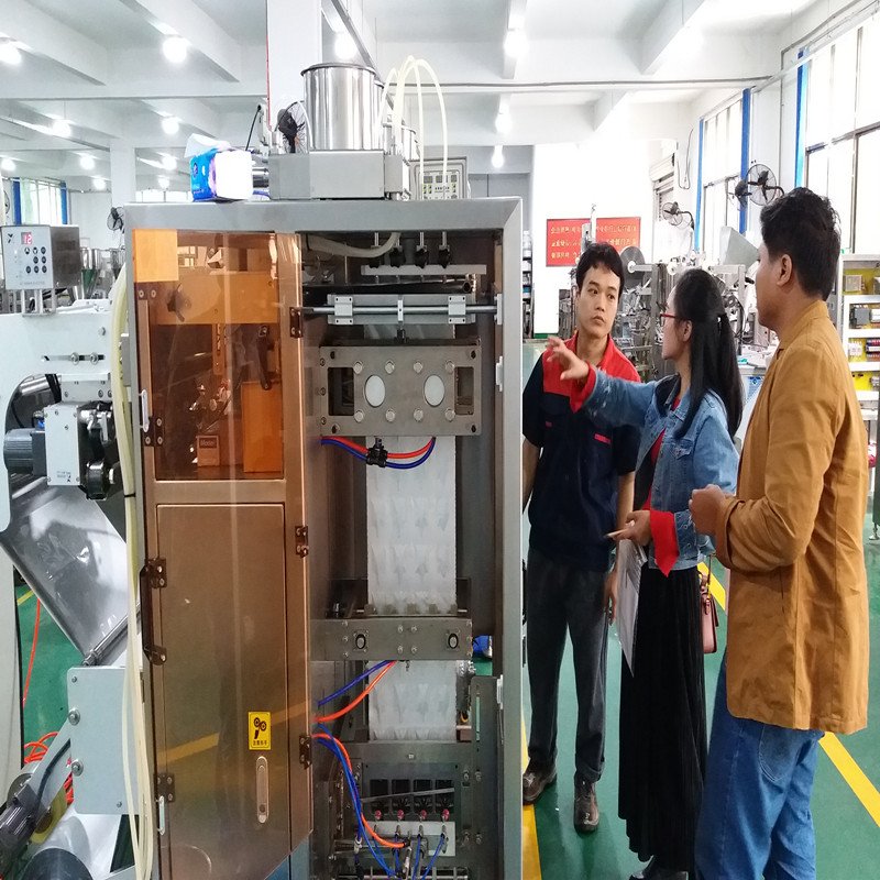 Бразильский клиент, посещающий и проверяющий упаковку упаковочной машины на заводе